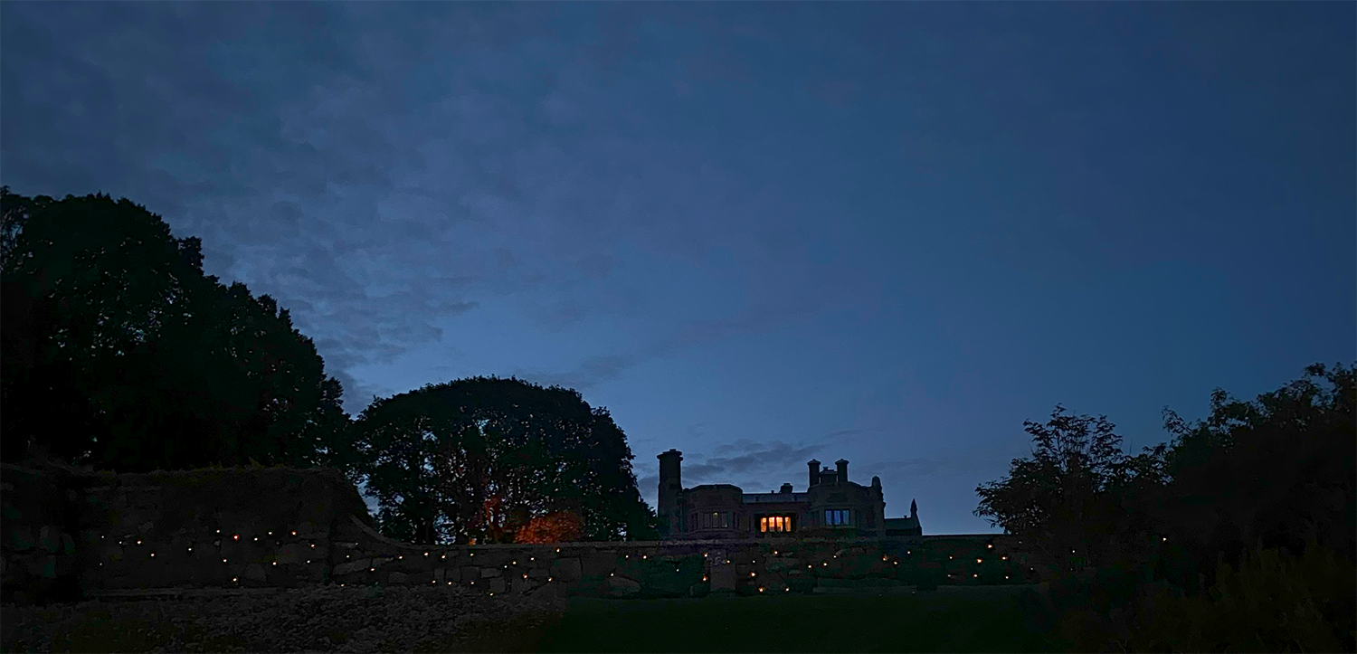 Att placera ljuset vid varje hörn och på varsin sida om vardera pelare gjordes för att slottets och pelarnas form skulle framhävas. Strukturen i stenarna förstärktes tack vare att ljuset riktades snävt nedifrån.